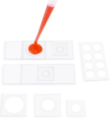 •  成像墊片是超薄的具有粘性的,撕下來后就可以粘附在蓋玻片或者顯微鏡載玻片上